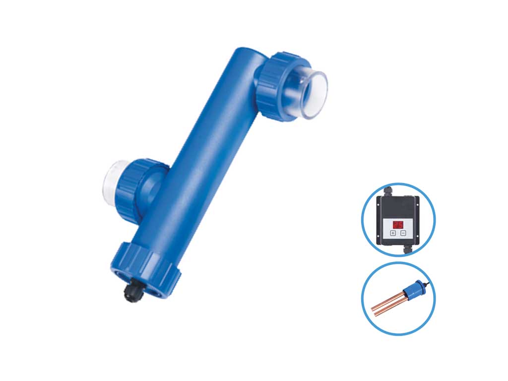 Ev havuzları içindir. Havuz suyunda küf, bakteri ve yosun oluşumunu kortrol eder. Ayrıca suya vermiş olduğu + yüklü iyonlar yardımıyla etkin bir şokülasyon da sağlar. Klor ve diğer kimyasalların kullanımını %80’e kadar azaltabilir. Bakır elektrolizi prensibi ile çalışır. Cihazın en etkili kullanımı UV-C cihazı ile birlikte kullanılmasıyla sağlanabilir. Sistemde filtreden sonra tesis edilir. Cihaz suya sürekli bakır iyonu verilmesini sağlar. +2 yüklü bakır iyonları bakteri, yosun, diğer primitif organizmaların hücre duvarını yıkarak öldürür. Cihazla birlikte verilen test aletiyle 2 haftada bir bakır konsantrasyonu ölçülür ve 0,7 ppm mertebesinde bakır konsantrasyonunun sürekliliği sağlanır. İyonizasyon miktarı elektronik kontrol cihazı yardımıyla kontrol edilir. Cihaz 75 m3’e kadar ev havuzları için idealdir. Bakır iyonizasyon sistemi mevcut havuzlarda yosun öldürücü ve topaklayıcı kimyasal ajanları rahatlıkla ve etkili bir biçimde ikame eder.